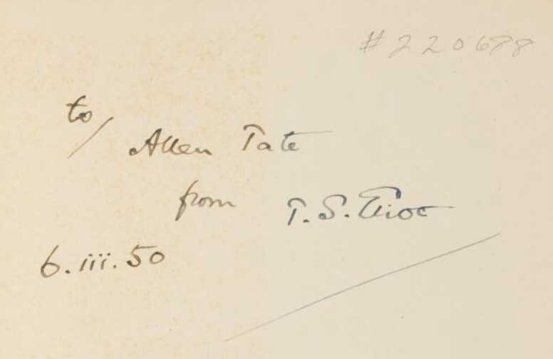The Cocktail Party inscribed to Allen Tate, January 2025