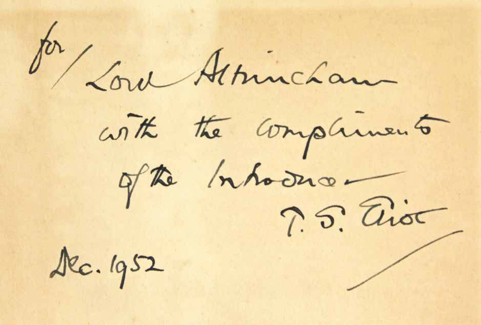 A First Edition of The Cocktail Party, inscribed by Eliot to the American poet, essayist and commentator Allen Tate, is being sold by Sotheby’s.