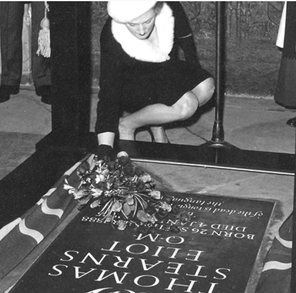 Beginning with a passage from Ecclesiastes, “Let us now praise famous men”, the service was held two years to the day after Eliot’s death. His widow Valerie laid a bouquet of roses on the tablet, which bears the lines from ‘Little Gidding’, “the communication of the dead is tongued with fire beyond the language of the living”.